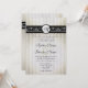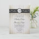Simple Vintage Modern Black and Beige Neutral Colours Elegant Black Floral Cutout Banner Across Top for Monogram Wedding Invitations