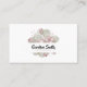 A simple, cute, girly, artistic business card with a floral motif painted with beige (tea colour) and olive green watercolors.