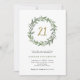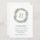 This simple and elegant twenty-first birthday invitation features a trendy watercolor wreath full of greenery and foliage, with the faux gold numeral "21" in the centre, on a white background.
