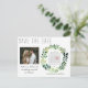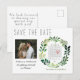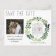 Let friends and family know you're getting married with these simple watercolor save the date announcement postcards. The design features rustic typography and a hand-painted watercolor wreath of green foliage. An adorable picture of the happy couple adds a special touch, as does the personalised calendar. Perfect for a spring or summer wedding.