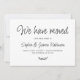 Minimalist Simple „We've Moved” Whimsical Typography Script New Home Moving Announcement Card. Let your friends and family know your new address using these minimalist elegant pretty hand lettering font script Calligraphy „We Have Moved” text on front and the back side „Please keep in touch!” text in black and white. Easy to customise with your own details.