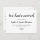 Simple Minimal „We've Moved” Script New Home Moving Announcement Postcard. Let your friends and family know your new address using these minimalist elegant pretty hand lettered font script typography (or calligraphy) „We Have Moved” text on front and the back side „Please keep in touch!” text in black and white. Easy to customise with your own details.