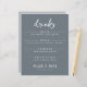 This design features wedding simple drinks sign signage, a minimalist minimal dusty dark blue, reception guest bar tabletop sign, with modern calligraphy script text font, an elegant trendy stylish typography font, simplistic elegance bar wedding décor, a beer wine cocktails spirits list, bar drinks menu paper sheet, an elegance simplistic reception guest sign, dusty dark blue colour scheme