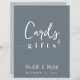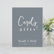 This design features wedding simple modern sign signage, cards and gifts quote saying, minimalist minimal dusty dark blue, great for reception guest bar tabletop sign, a modern calligraphy script text font, elegant trendy stylish typography font, simplistic elegance bar wedding décor, beer wine cocktails spirits list, an elegance simplistic reception guest sign, a custom customise reception signs