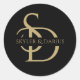 Elevate your wedding details with the Simple Wedding Monogram Personalised With Name Classic Round Sticker. These custom wedding monogram name stickers are designed to add a personalised, elegant touch to your special day. Featuring the bride and groom's initials in a sleek black and gold design, these round stickers are perfect for sealing wedding invitations, decorating favours, or adding a stylish element to your wedding stationery.