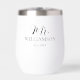 Beautiful wine or coffee tumbler for the wedding couple to commemorate their special day. Design features Mr. on the front (but easily change to Mrs. Personalise by adding names and date. Easily change the font colours too. Makes a perfect wedding or anniversary gift.