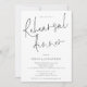 Simple Wedding Rehearsal Dinner. Shown in classic black and white. This modern design has elegant informal set script for rehearsal Dinnerand the rest of the typography you can easily personalise. You can also change text and background colours on either side if you wish via the Customise Further option.