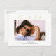 This simple, chic horizontal photo wedding save the date postcard template features a lively handwriting script above your photo, and the 'S' and 'D' in the Save the Date script dip slightly into the photo, for a feeling of flow. We've chosen a tone known as 'vegas gold' for the 'Save the Date' script on front and the back, and this cannot be altered, though you can delete it-you might choose to do that with the script on back if you'd prefer a simpler look. On the front, you can change the format of the date and location if you prefer that info in a different order, with different punctuation, different size, style or colour text etc. On the back, aside from the 'save the Date' script, you can change the font and colour and size of the other text to suit your taste. You might choose to delete something or change a text field entirely with a different message. Or you might decide to delete the lines for the addressee's information if you prefer a more minimalist look, etc. We offer variations of this design and a wide selection of other modern minimalist Save the Date items in our shop. We hope you'll enjoy experimenting with this template and make it uniquely yours with the intuitive design tools and your inspiration!