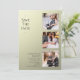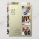 Simple Wedding Save The Date Photo Picture Invitations features four of your favourite photos, three on the front and one on the reverse with the text "Save the date" in elegant modern script typography on a beige shimmer background. Simple, modern and elegant for your wedding day celebration. Designed by ©Evco Studio www.zazzle.com/store/evcostudio