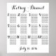 A simple black and white wedding reception seating chart with the bride and groom's name at the top (Change this text to anything you want) and the wedding date at the bottom (Change this to anything else as well). On the right, you can use the template to easily fill in the names of your guests by table. When done with that, make sure to click "Customise it!" to change any font colours and styles, remove tables, add tables, etc. to truly personalise it for your special day!