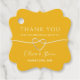 Simple, elegant, minimalist, wedding thank you favour tag with modern calligraphy script and faux gold rope heart.