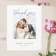 This simple, chic photo wedding thank you postcard template features a crisp, modern design. We've chosen a stylish modern script for 'thank you' on the front. We've positioned this part of the design so that it flows into the top of your photo. Our sample photo works well with this feature, as the photo has a simple light background at the top. If your favourite photo isn't as well suited to this overlap, or if you're just curious about what a different version of this design looks like, please check our shop. We have a similar version with the 'thank you' positioned above the photo. The 'thank you' part of the design can't be altered. But you can change the colour and font of any other text to suit your style. The default text colour on the front is black. We've set the background on both sides as transparent, so that the base colour will simply be the colour of the paper. You can change this on one or both sides by choosing a colour instead. We've put some sample text on the back for you to replace with your own message as you see fit, but please don't feel restricted by this. If you prefer delete our sample text entirely and keep that part of the postcard totally blank so that you can write a handwritten note on the back of each postcard instead, you can do that. Or you might want to replace our text with your own message of gratitude and your own closing and then hand sign your names when you receive the cards. In any case, please do remember to remove all of the sample/placeholder text on both sides, including the sample return address on the back as well as the front sample details and photo! We've chosen matte rather than semi-gloss as the default paper choice, as it is well suited to writing your own message on and won't smudge. You can of course change this to semi-gloss if you prefer. Make this stylish modern wedding thank you postcard uniquely yours with the intuitive design tools, your favourite photo and your inspiration!