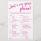 Simple Whats on Your Phone | Hot Pink Game Card