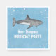 This cute design features a simple blue animal party décor, a cute pool party water ocean, with watercolor shark fish sea animal, a blue custom paper party napkin, a cocktail drinkware drink beverage, with wild wildlife nautical marine life, with sharks fish marine grey black, a fun whimsical festive picnic invite, great for summer fun swimming swim party, for backyard summer kids birthday party supplies