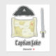 This design features modern simple pirate boy fun, with a minimalist treasure map sword, jolly roger buccaneer raider sailor, pirate hat skull and crossbones, skull and crossbones whimsical, boys birthday party favour decal, sticker label cute bright colourful, happy birthday kids children, unique boys birthday party theme, classic pirate hat, and sword