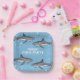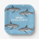 Simple Whimsical Pool Party Sharks Blue Ocean Paper Plate