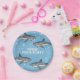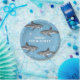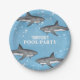 Simple Whimsical Pool Party Sharks Blue Ocean Paper Plate