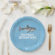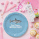 Simple Whimsical Pool Party Sharks Blue Ocean Paper Plate