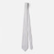 This men's white tie has a pattern of vertical stripes. The black stripes are thin.