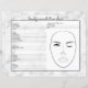 This simple and contemporary beauty consultation face chart is perfect for any modern business; salons, stores, and various businesses. . It features a simple black and white marble background with black handwritten cursive script typography, a face chart, and a place for your logo and business information. It's elegant, chic, trendy, and cool. ***Contact the designer if you need any change to the sheet.***