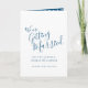 Simple script text on dark mid blue with white hearts folded add your own photo wedding invites. Modern simple blue and white folded wedding invitations designed to use with enclosure cards put inside. Matching RSVP and other enclosure cards items available in store. Simply personalise by adding your own words and couples photo. Design by www.mylittleedenweddings.com on zazzle.