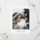 This simply chic photo wedding save the date flat card template features a clean, modern design with elegant script in white over the lower portion of your photo. We've added a gradated layer at the bottom to enhance this 'Save the Date' element of the card's design, so that it will stand out more clearly. Having said this, the final look will depend on the photo you choose and how much contrast there is between the colour at the bottom of your photo and this white script. We have chosen an elegant dark grey tone for your names on the front, but there are numerous other colours you can chose instead by entering the number of a colour you like from your research or by simply choosing anther colour by sight in the design tools. We have chosen a different grey tone for the date and location info on the front of the card below your names, and you can change that colour easily as well, to black if you prefer, for example, or any other tone. You can also of course change the + symbol between names to 'and' or another symbol if you'd like, or change the font of the text with your information. The background on the back is set as transparent to let the colour of your paper serve as the base colour, but you can change that and choose a colour that suits your style if you'd like. You can change numerous aspects of the design on the back as well, including changing the text colour to something other than the grey tones we've picked, changing the font, changing the basic content of text fields, etc. In any case, please do remember to delete all of our sample details and photo! Customise this design with the intuitive editing tools and your inspiration and make it uniquely yours. And please check our shop to see a postcard version of this design and many other stylish modern Save the Date cards!