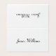 White and black simple folded place setting cards (horizontal tent) with black text printed on white background. Dimensions of the cards are 2 inches x 3.5 inches (folded) and 4 inches by 3.5 inches (unfolded).