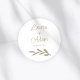 Enhance your wedding favours with a modern touch of elegance using this stylish round wedding sticker. It boasts a pristine white background and faux gold script typography. Customised with your names and wedding date, this chic sticker is ideal for sealing envelopes, embellishing favour bags, gift boxes, thank you cards, or welcome bags. Its minimalist design and romantic handwritten font offer a timeless, sophisticated appearance suitable for contemporary, classic, or evening weddings.