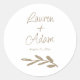 Simple White & Gold Script Wedding Classic Round Sticker