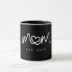 Simple White Heart Script Modern Mum Established Mug design features clean script typography with a small heart detail integrated into the word mum, creating a simple and meaningful focal point. The black background gives the design a modern, classic look while keeping the personalised establishment year easy to highlight.