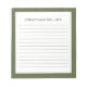A professional lined notepad with a minimalist design in an olive green and white colour palette. Custom monogram initial and name on a simple white background, framed by an olive border. Personalise using the fields provided or use the 'message' button to contact the designer for help.