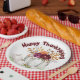 Enhance your Thanksgiving celebration with a simple white pumpkin and floral arrangement, paired perfectly with paper plates set against a white background. This combination creates a warm, inviting, and effortlessly elegant table setting. Happy Thanksgiving.