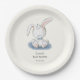 Simple White Rabbit Blue Tie Baby Shower Paper Plate
