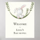 Simple White Rabbit Greenery Welcome Baby Shower Poster