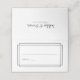 White reception cards with a black border and personalised with bride and groom's name on back
