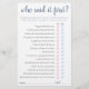 "Who said it first?" Simple keepsake baby shower or gender reveal party guessing featuring a fun, casual hand-lettered script. The classic design includes a modern handlettered quote typography overlay. For other colours or matching products, please visit the JustFharryn Zazzle store, or contact the designer, c/o Fharryn@yahoo.com All rights reserved. #bohochic #zazzlemade