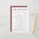 "Who said it first?" Simple keepsake baby shower or gender reveal party guessing featuring a fun, casual hand-lettered script. The classic design includes a modern handlettered quote typography overlay. For other colours or matching products, please visit the JustFharryn Zazzle store, or contact the designer, c/o Fharryn@yahoo.com All rights reserved. #bohochic #zazzlemade