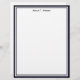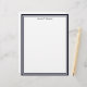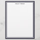 A simple and elegant letterhead design with a Dark Blue and White graphic frame, a white background and black print for your name.