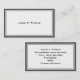 A simple business card with a Grey and White graphic frame, with a white background and black print. Customised details that you'll want to include are on the reverse side, which also has the Grey and White frame, a white background and black print.