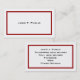 A simple business card with a red band framing a white background and black print. Customised details that you'll want to include are on the reverse side, which also has the red band, a white background and black print.