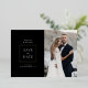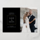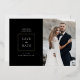 This double-sided simplistic black-and-white photo save-the-date announcement captures the essence of simplicity and sophistication. Featuring your photo with black blocking, a real gold foil square frame, and serif font on the front and another photo with your optional message on a white background on the reverse side.