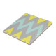 A chevron pattern of yellow, grey, and blue. Its simple, fun and great on just about everything!