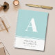 Modern aqua monogram notebook with customisable name and additional text. Personalise to your own requirements. Matching items available.