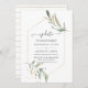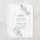 Watercolor floral greenery postponed wedding announcement in pastel shades with gold geometric frame customisable to your event specifics.