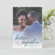 This stylish photo Save the Date flat card features hand lettered typography, reading, "better together" over a full bleed photo template. A white overlay on the bottom of the card allows the text to stand out over almost any photo! The back of the card contains a simple tiny dots pattern in white over a custom colour background. For design enquiries, please contact me (Tracey) at orabellaprints@outlook.com.