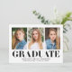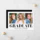 Celebrate your graduate’s achievement with these minimalist graduation announcements, featuring three of their favourite photos paired with bold black "Graduate" lettering. Personalise this sleek and modern design by adding the graduate's name, school name, and graduation year. Perfect for showcasing a collection of cherished moments, this announcement offers a stylish and timeless way to announce the big day. Ideal for both high school and college graduates, it’s a simple yet elegant way to share their success with friends and family.