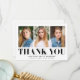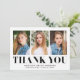Simple graduation thank you card featuring the graduate's 3 photos on the front with "Thank You" displayed in bold black lettering. Personalize the photo graduation thank you card by adding the graduate's name, school name, and graduation year. The back of the card provides space for your typed or handwritten thank you message.