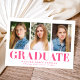 Celebrate your graduate's milestone with these minimalist graduation announcements, showcasing three of their best photos and bold hot pink "Graduate" lettering. This modern and vibrant design offers a fun and stylish way to announce their achievement. Personalise the announcement by adding the graduate's name, school name, and graduation year for a truly unique touch. Perfect for both high school and college graduates, this multi-photo design is an eye-catching and memorable way to share their success with loved ones.