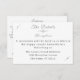 Design front features a white background to an elegant silver font, "The Details" displayed above a silver flourish. Customisable text bearing the information for reception is displayed below. A delicate flourish is displayed at two corners.