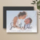 This simple, stylish modern photo magnet wedding save the date card template features 'Save the Date' in a lively modern script with your first names, date and wedding locale on a single line below it. The Save the Date script is black and the default colour for the names, date and location details text below that is a very dark grey that's mostly black. You can change the colour or font of the details text to suit your taste. Use zazzle's intuitive editing and design tools, your favourite photo and your inspiration to make this simply chic magnetic wedding save the date card uniquely yours!